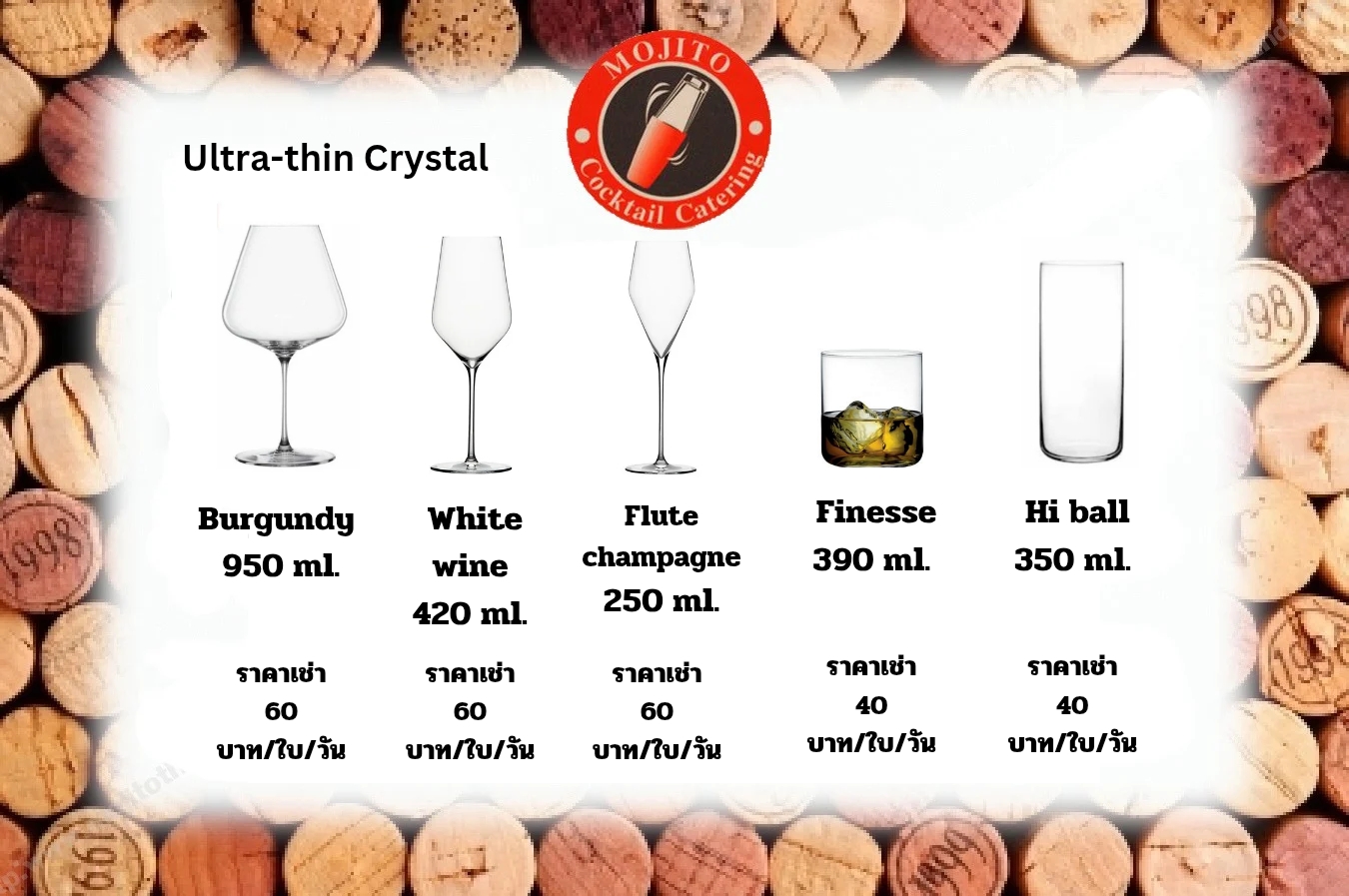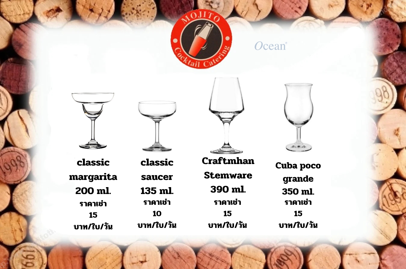 และเช่าแก้วหลากหลายชนิด ยินดีให้บริการทุกพื้นที่